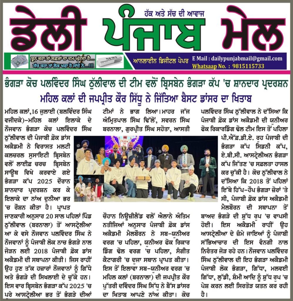 • Girls team won first prize in the live folk category at the RPD Bhangra Cup, Sydney.